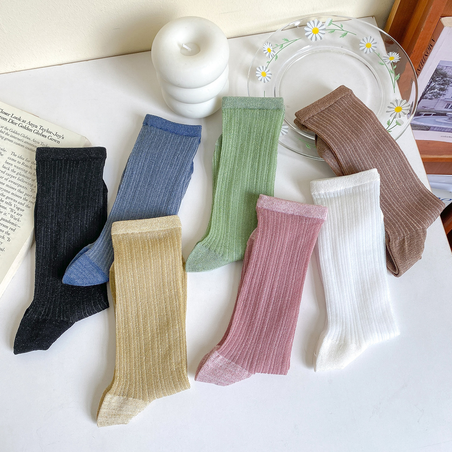 夏の靴下の女性の透明な水晶の糸の中筒の靴下の甘美な百合の愛のガラスの綿の底のストッキングの夏の薄いタイプ