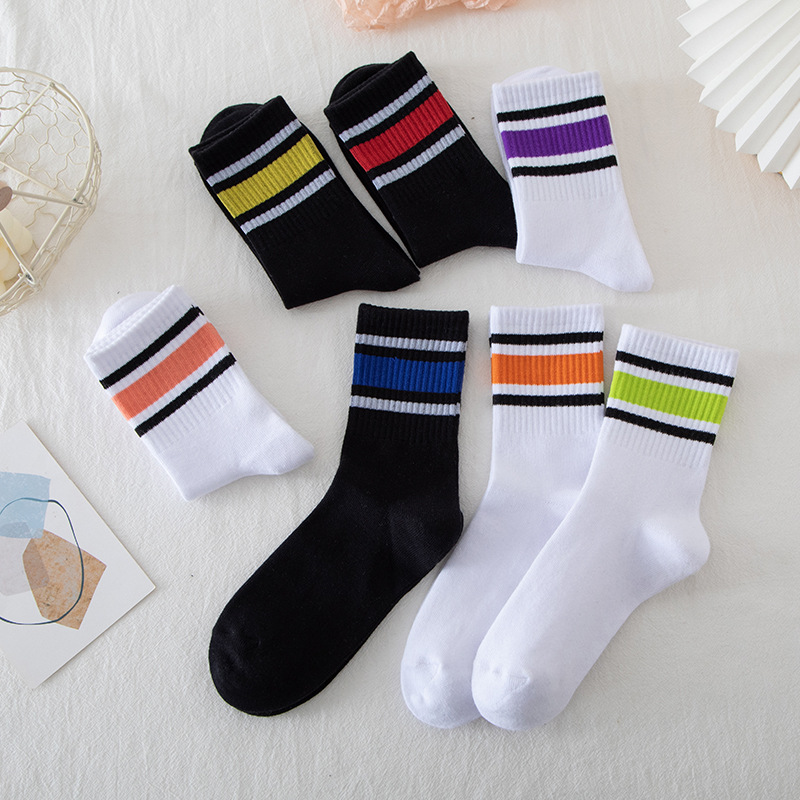 靴下の女性の靴下の男性の純綿の防臭のストライプの中で筒の靴下のinsの潮は百合の春秋運動の黒い白いカップルの靴下を合わせます。