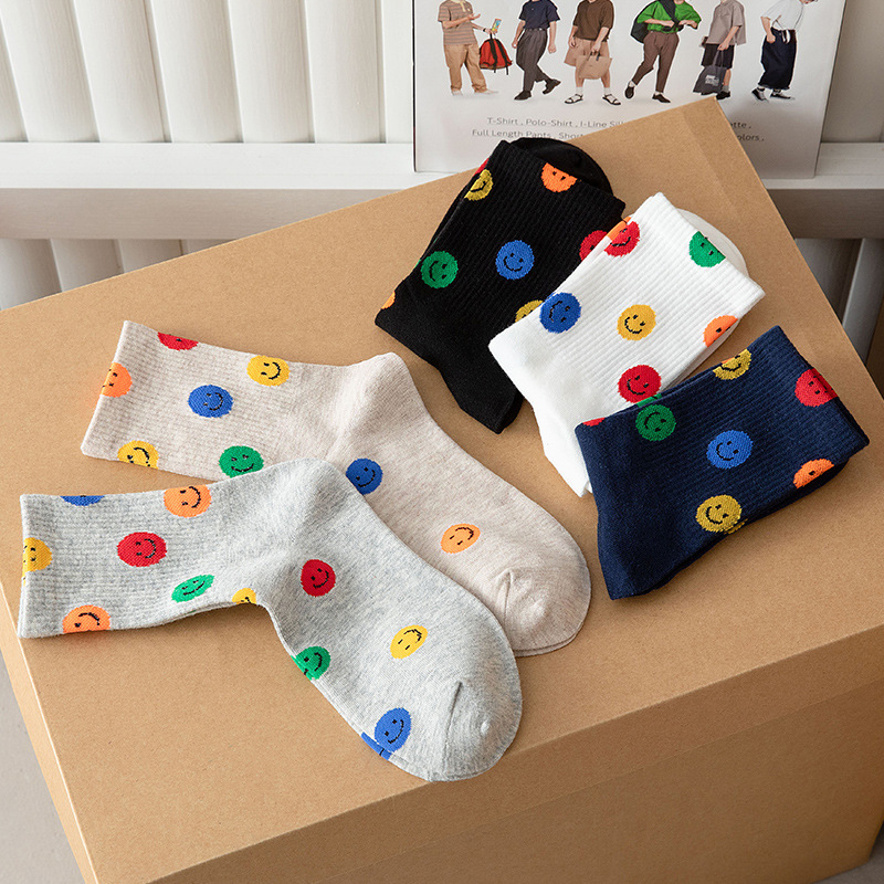 カラーの笑顔の靴下の女性の中筒の靴下は甘くて、高い組の韓国の靴下のinsの潮の韓国の外で秋のストッキングの綿を着ます。