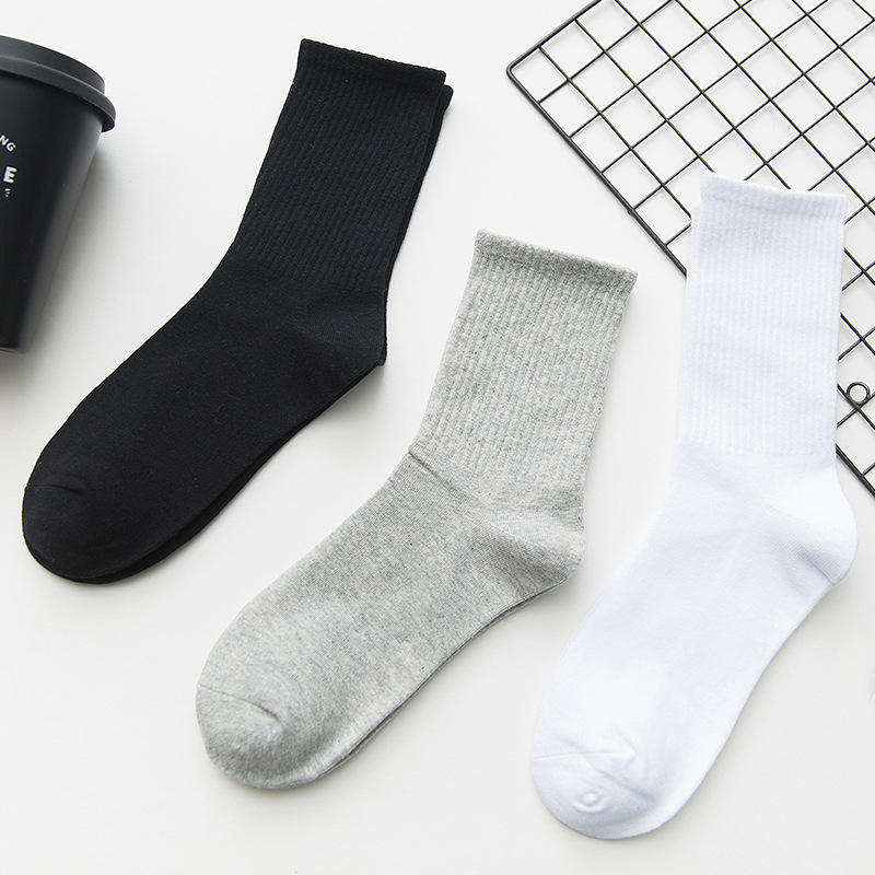 黒と白の靴下の女性の中筒の男性の靴下の純色の綿の男性の四季のタイプの通気性は汗の運動風の学生のストッキングの潮を吸います。