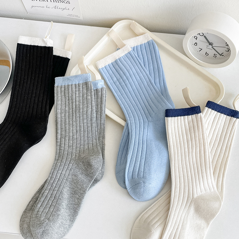 靴下の女性の中の筒の靴下の2023の新型の秋冬の双針は色のinsをつづり合わせます。