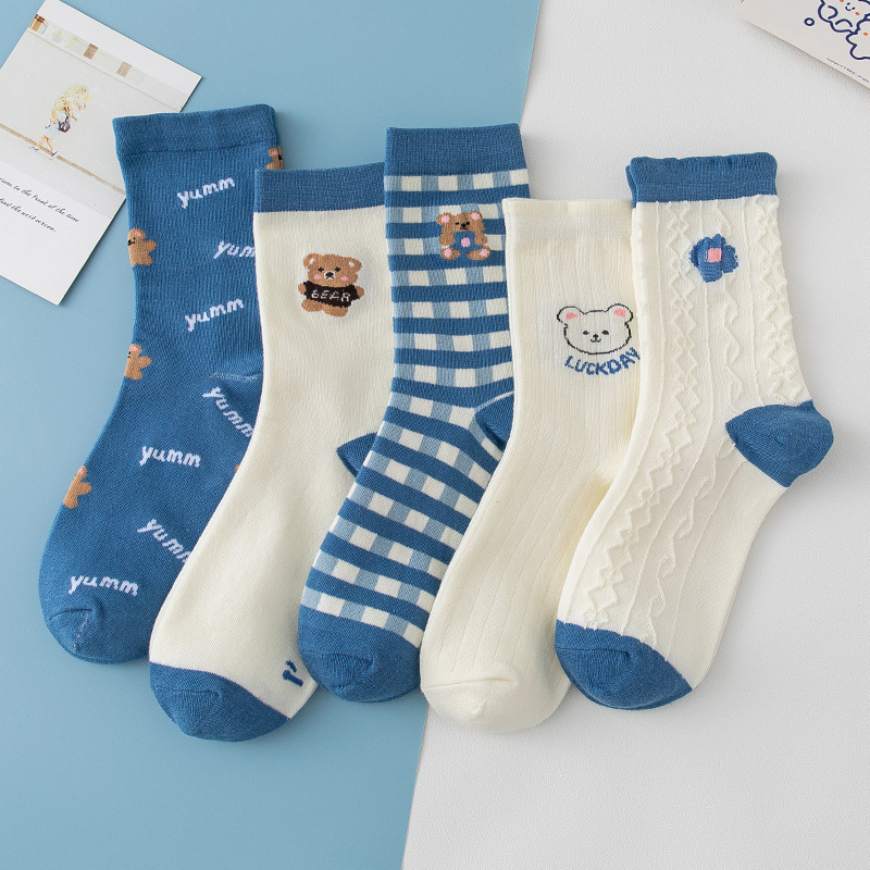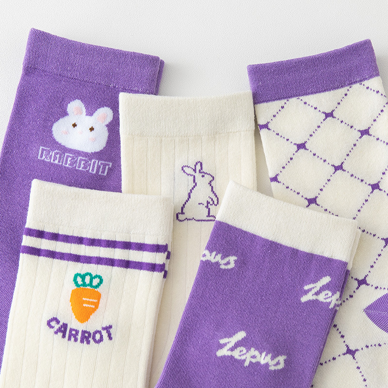 靴下の女性のストッキングの秋尚新の紫色の学生の綿の靴下の韓風のかわいいウサギのストッキングの白い女性の靴下の薄いタイプ