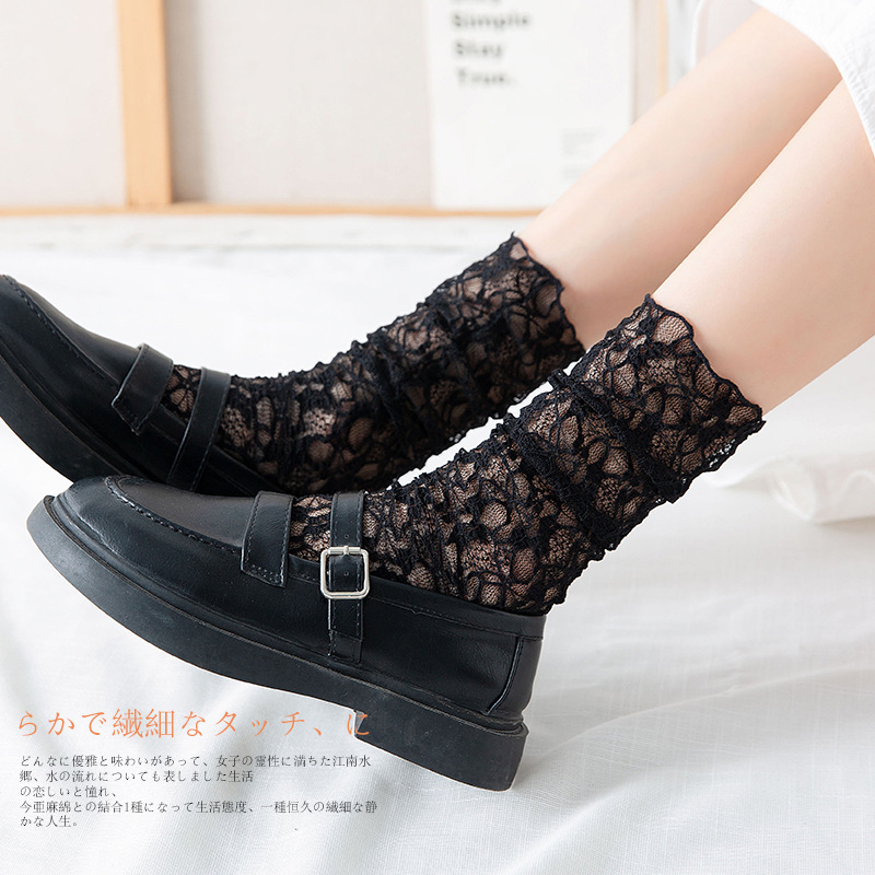 白い靴下の女性のストッキングの日系jkレースのストッキングの夏の薄いタイプのネットの赤いinsの潮のファッションのストッキングの綿