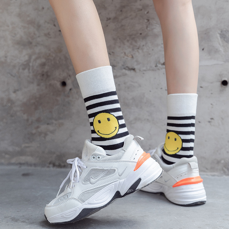 ストライプの笑顔の靴下の女性のストッキングの韓国ins潮網の赤いタイプの長い筒の綿の靴下の春と秋の外は諸及び女性の靴下を着ます。