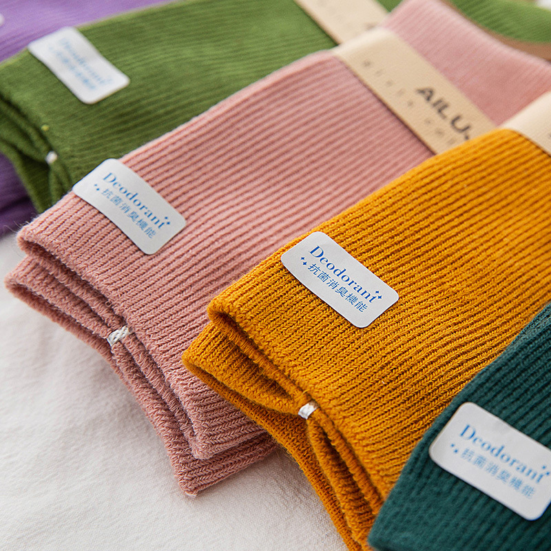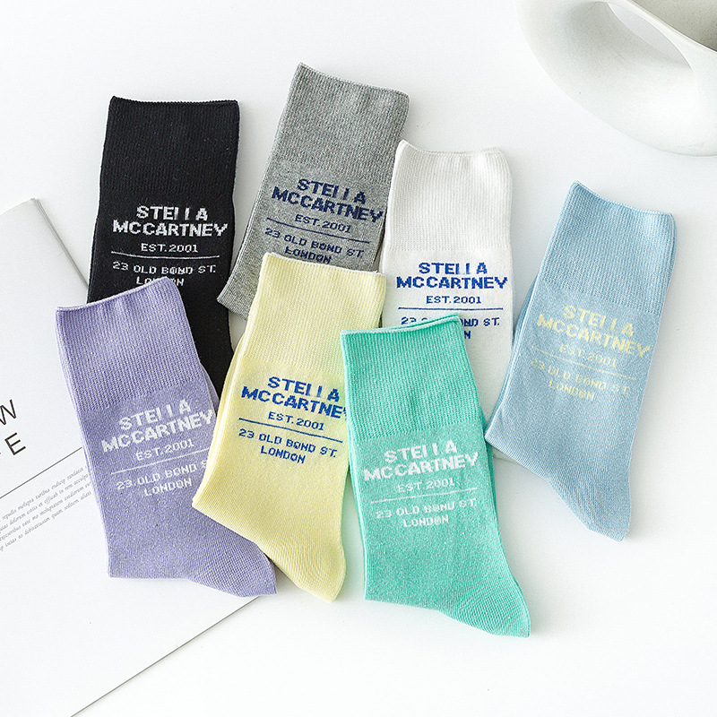 靴下の女性の夏の薄いタイプの通気性の純綿insのファッションの韓国のアルファベットのファッションのストッキングのキャンディー色のストッキングの女性