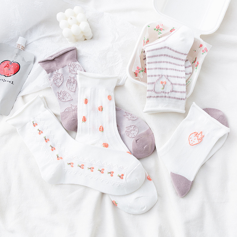 靴下の女性の夏の薄い目の中のストッキングinsの湿った白いレースの積み重ねの靴下の甘いネットの赤い果物の靴下の綿