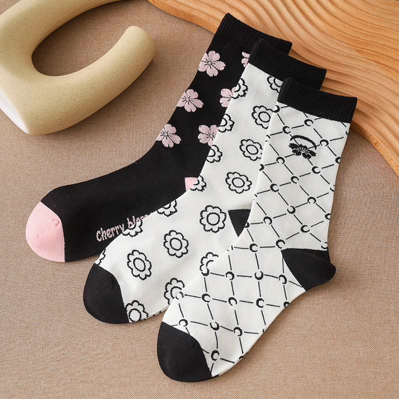 靴下の女性の春夏ファッションins潮網紅新商品の桜のストッキングは甘くて薄いタイプの新疆綿の靴下の中筒になります。