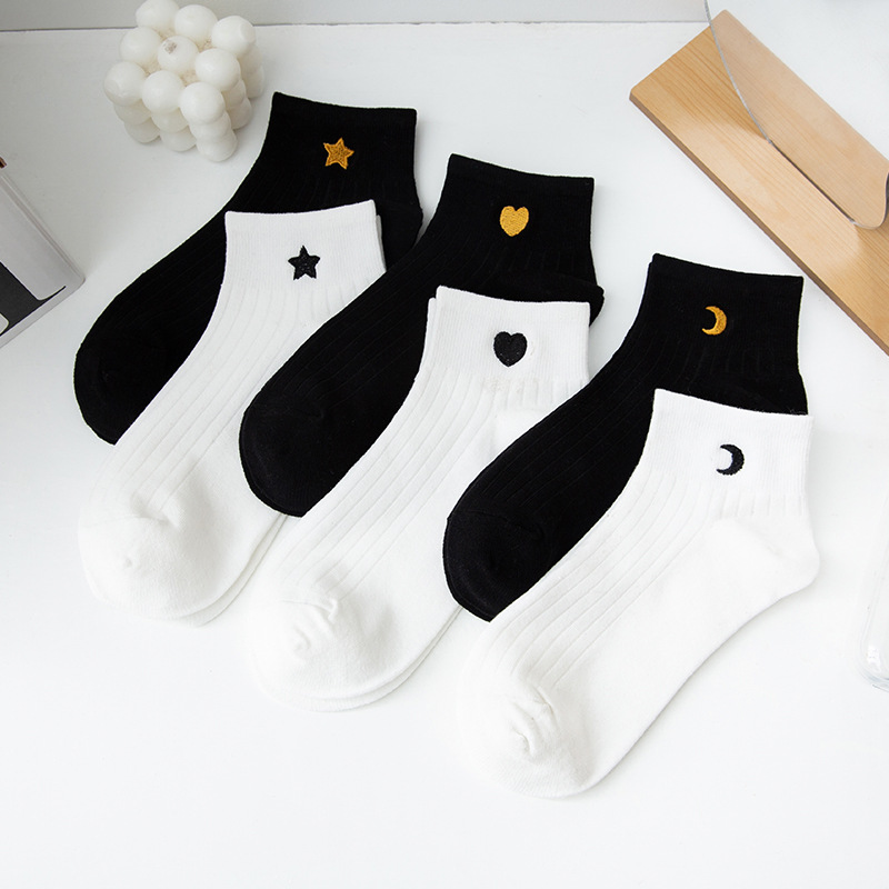 白い靴下の女性ソックス春夏の甘い刺繍月の星のソックス