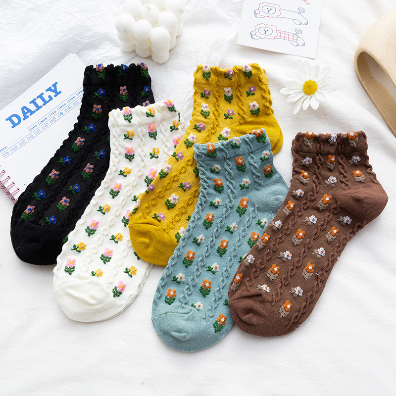 靴下の女性の薄い麻模様のソックス春の夏の田園風の小さい花の靴下