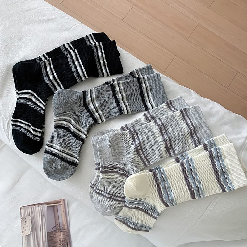 夏の薄いタイプの靴下の女性の中筒の靴下は優しく色のストライプの靴下のメッシュの薄い綿にぶつかって、夏は小さい靴の韓国の靴下を配合します。