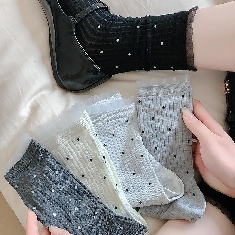 波点靴下の子供の夏の薄いタイプの靴下のバレエ風の灰色の靴下と小さい靴の夏のjkの中で靴下