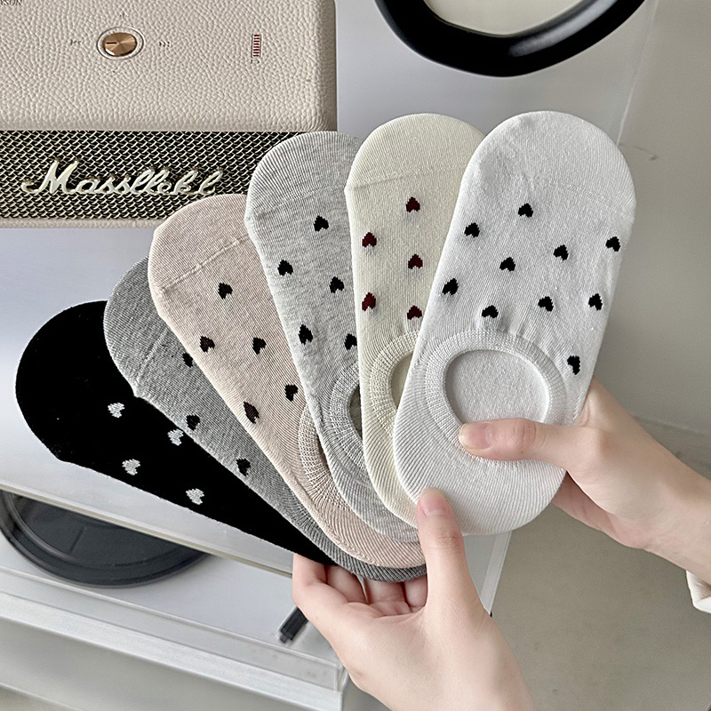 女性用ボートソックス、浅い口、目に見えない滑り止め接着剤、脱落しない、夏用の薄い綿の小さな愛、韓国の2025年の新しい目に見えないソックス