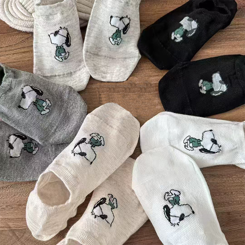 ボートソックス女性の夏薄い滑り止め脱落防止綿メッシュ吸汗性通気性漫画子犬韓国骨なし女性の靴下
