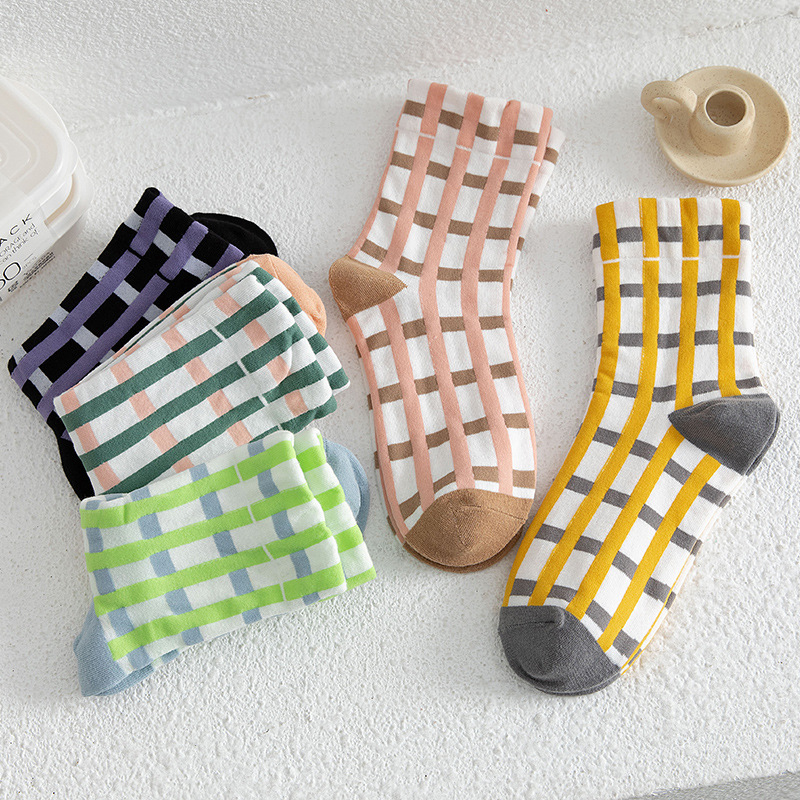 早秋の格子の靴下の女性の中筒の靴下の韓風のファッションのinsの潮の百合jkのストッキングは靴の女性の純綿の靴下を配合します。