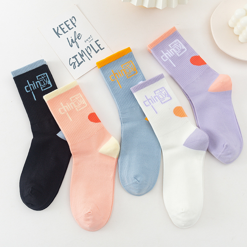 国潮靴下女子春秋薄手ins潮クール中国ストッキング2021新型ネット赤衝突色純綿中筒靴下