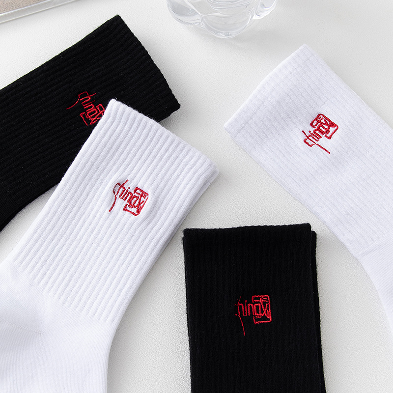 刺繍の中国のストッキングの子供の春と秋のinsの潮は綿の靴下の白いバスケットボールのスポーツの中で靴下の男性の黒色を着ます。