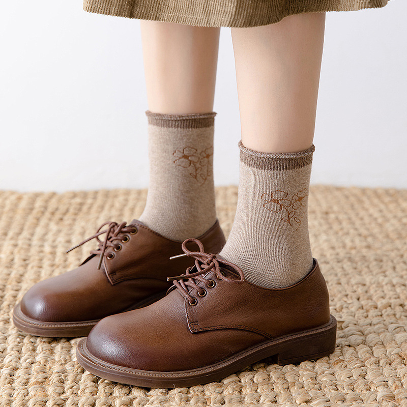 靴下の女性の秋冬のかわいい日本の布の標識の女の子の白い中筒の靴下のinsの潮の百合の純綿の積み重ねの靴下の長い筒