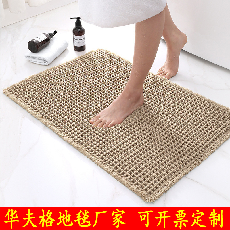 純色のワッフルカーペットのトイレは入り口に入って吸水します。