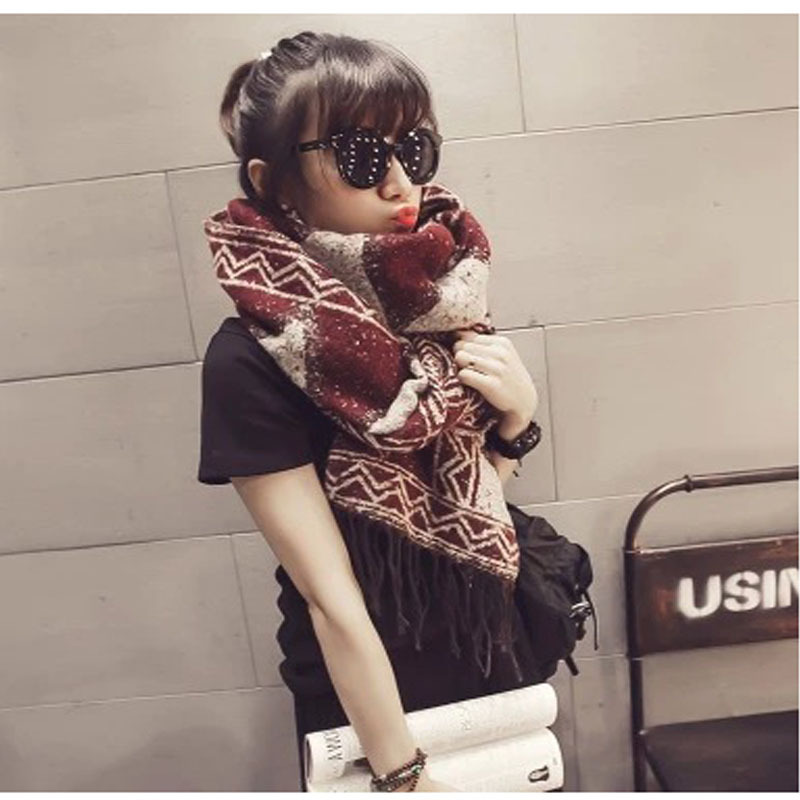 秋冬の民族風の幾何学のフリンジの大きいマフラーの保温の長いタイプはカシミヤのショールの韓国版の厚いマフラーの女性をまねます。