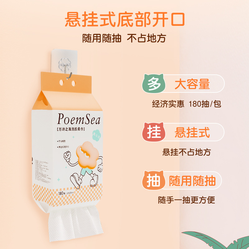Unny悠宜軽顔洗顔タオル使い捨て純綿厚手ロール式80吸乾湿両用洗顔タオル