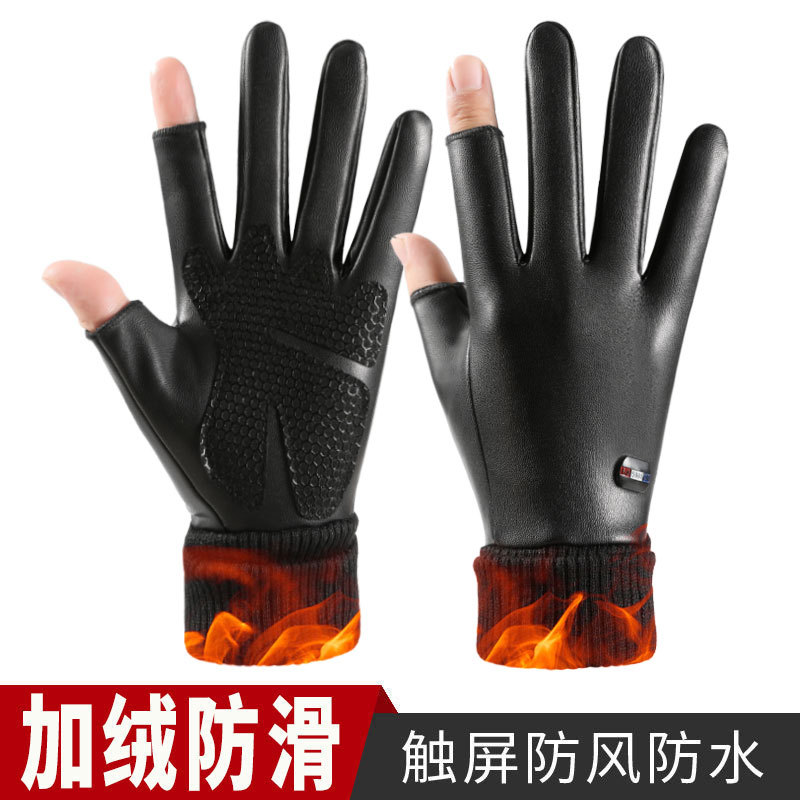 カバーリング手袋露出二本指革手袋冬のテイクアウト防水防寒アウトドア自転車運転釣り保温手袋
