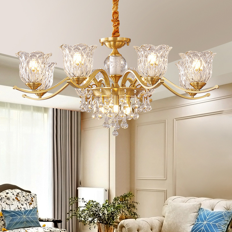 フレンチライト高級リビングルームシャンデリアアメリカンレトロクリスタルランプヨーロピアンスタイルシンプルなベッドルームメインランプダイニングルームランプ全銅ランプ
