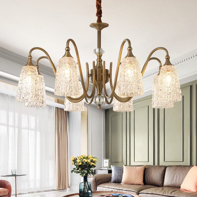 アメリカンレトロな雰囲気のリビングルームランプ、ハイエンドのヨーロピアンスタイルの高級ヴィラ、レストラン、寝室、書斎、クリスタル全銅シャンデリア