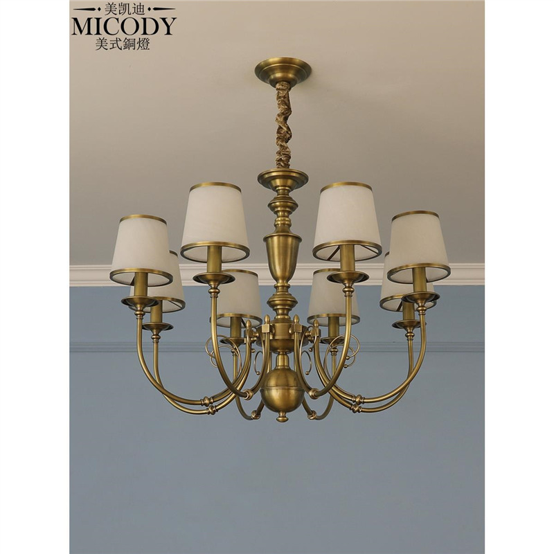 アメリカンスタイルのアンティークブロンズ全銅リビングルームシャンデリア北欧モダンシンプルリネンシェードダイニングルームベッドルームランプ