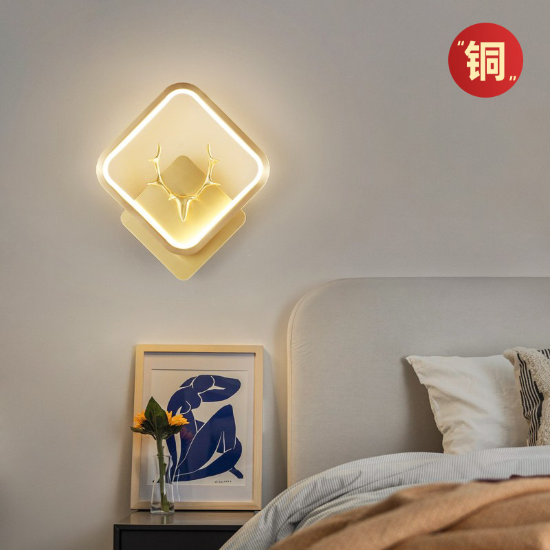 全銅製のモダンでシンプルなリビングルームの壁ランプ、中国風のポストモダンなレストランのマスターベッドルーム、多用途で雰囲気のある正方形の中山ランプ