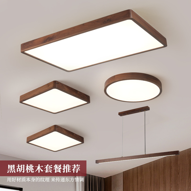 新しい中国風のシーリングランプ輸入ブラックウォールナットラウンド無垢材寝室ランプリビングルーム研究フルスペクトル目の保護ランプ