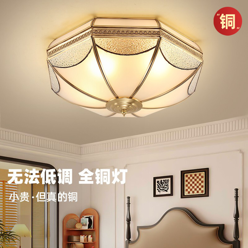 全銅製アメリカンベッドルームシーリングランプ、ハイエンドヴィラ、マスターベッドルーム、リビングルーム、キッチン、LEDバルコニー通路雰囲気ランプ