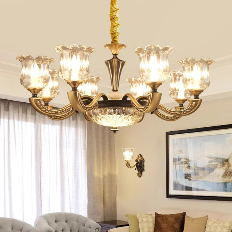 全銅アメリカンレトロリビングルームシャンデリアシンプルなハイエンドヴィラデュプレックスレストラン寝室書斎シャンデリア照明器具