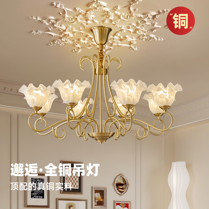 全銅フレンチミッドセンチュリーアメリカンレトロリビングルームシャンデリアデュプレックスクリームスタイルクリエイティブブランチヴィラ2025フラワーランプ