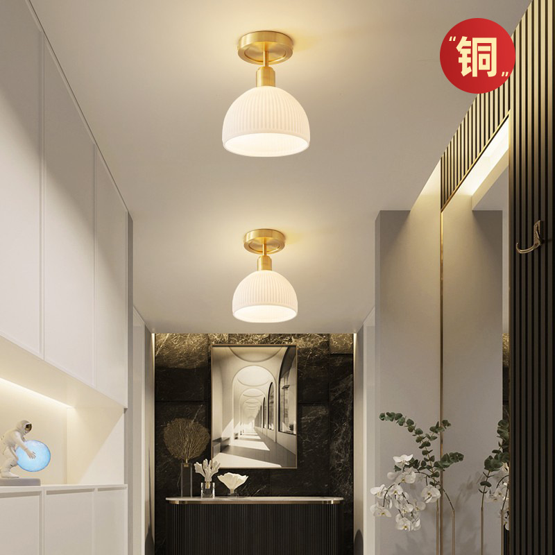 全銅アメリカンシンプルな寝室のシーリングランプイタリアンモダンライト高級書斎バルコニー廊下ミニマリストルームランプ