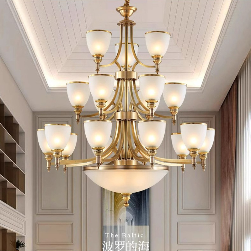 アメリカンスタイルの全銅シャンデリアリビングルームの高級大型リビングルームヴィラロビーホテルシャンデリアデュプレックスフロア照明器具Y075