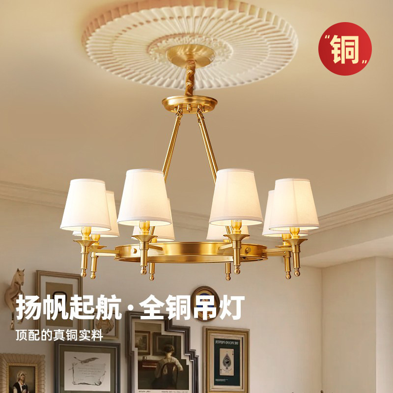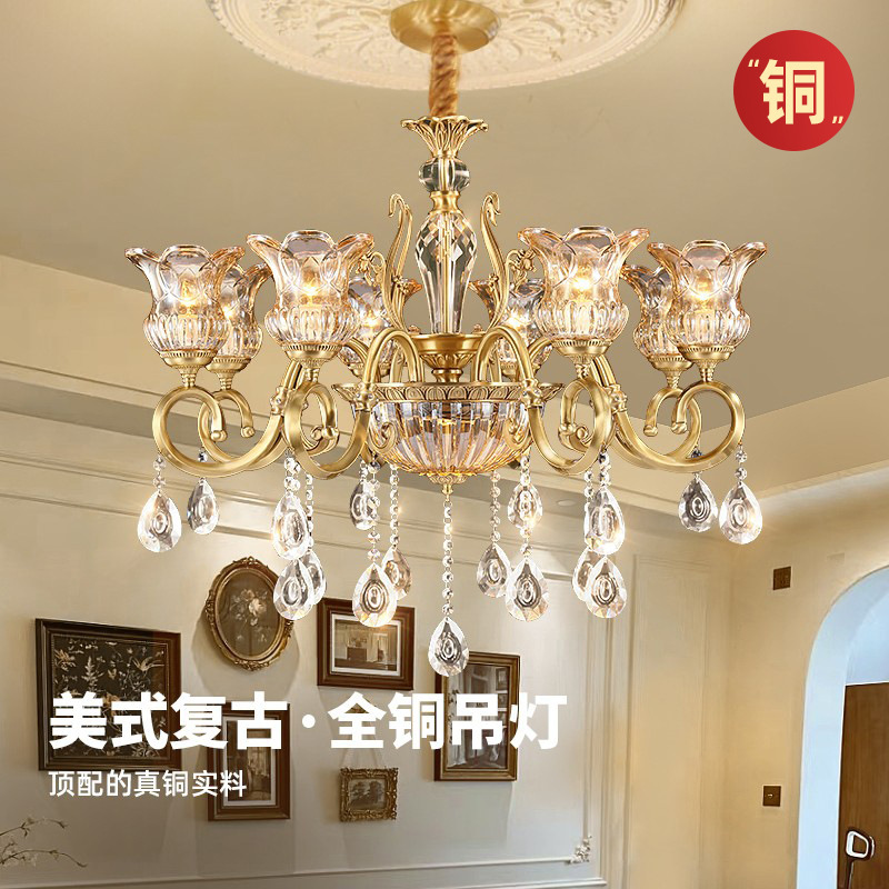 全銅アメリカンレトロリビングルームシャンデリアフレンチライト高級2025新しいホールメインライトヨーロピアンスタイルの寝室とレストランの照明器具