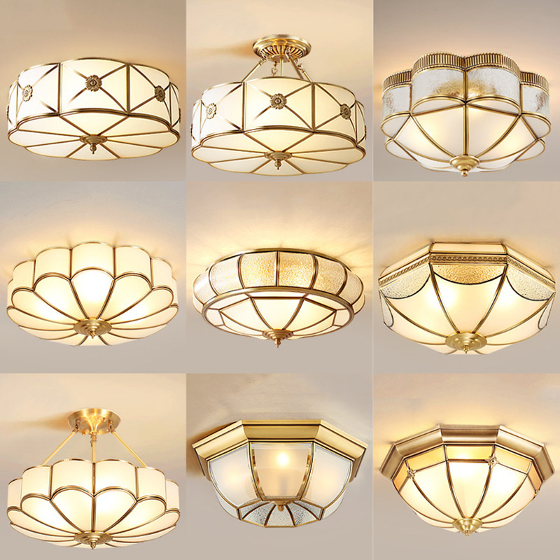 全銅アメリカン中世フレンチレトロ寝室の天井ランプシンプルで軽い高級書斎階段通路クリエイティブラウンドランプ