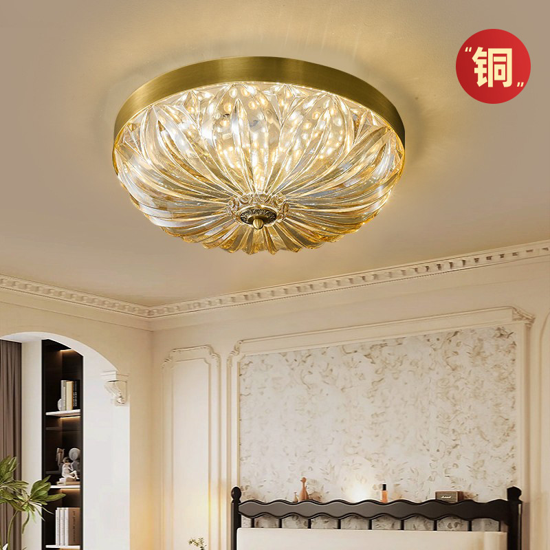 全銅製アメリカンライト高級ベッドルームシーリングランプフレンチミニマリストマスターベッドルームスタディルーム超薄型密封多用途ランプ