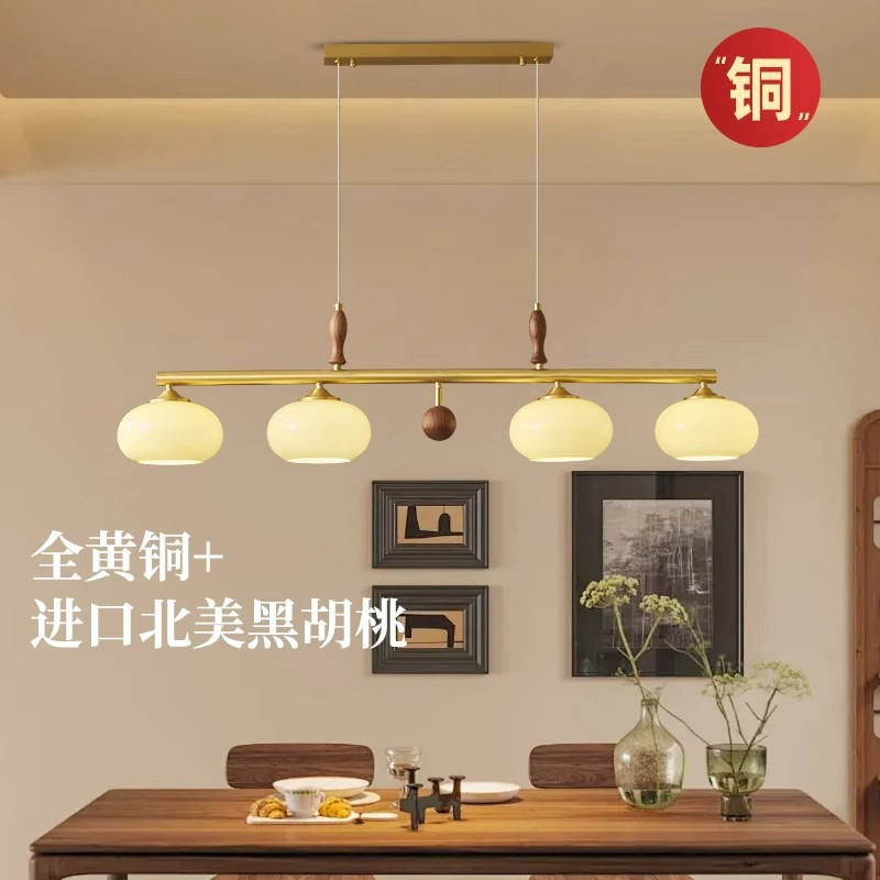 全銅製ミッドセンチュリーレストランシャンデリアアメリカンレトロバーロング無垢材雰囲気アイランドテーブル長方形ウォールナットランプ