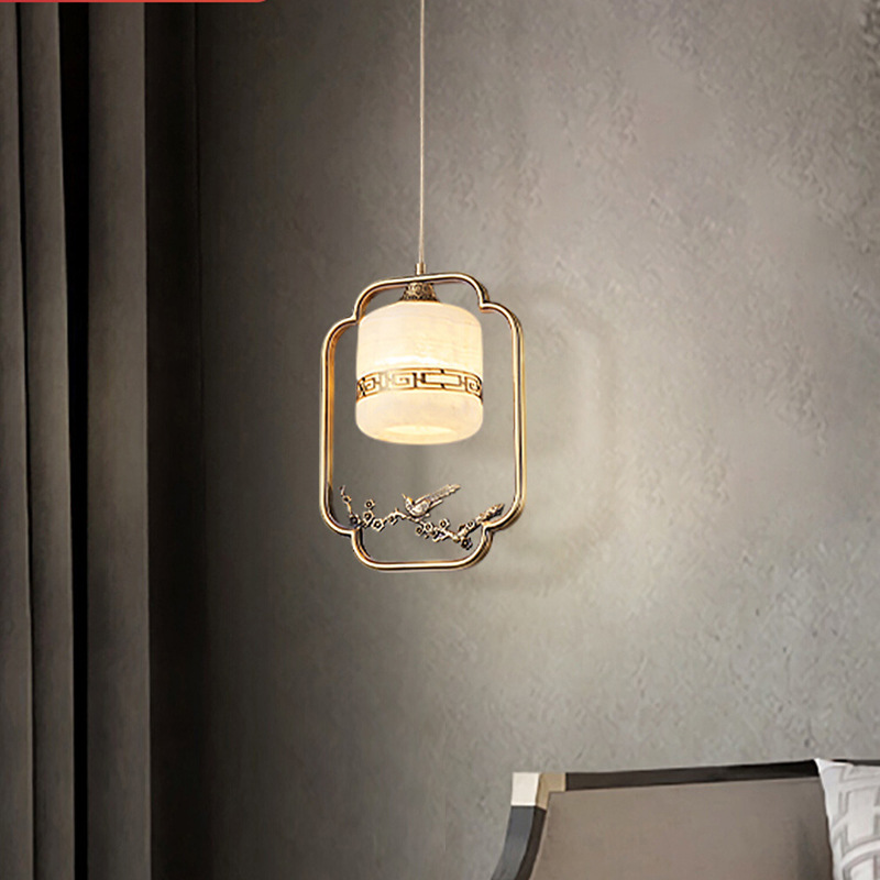 新しい中国風の全銅大理石シングルヘッド小さなシャンデリア禅茶室寝室ベッドサイドランプ玄関ホール廊下通路ライト