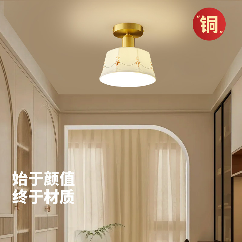 全銅中世スタイルのリビングルーム通路ライトセラミックフレンチクリームクリエイティブ玄関廊下クロークLED目の保護ライト
