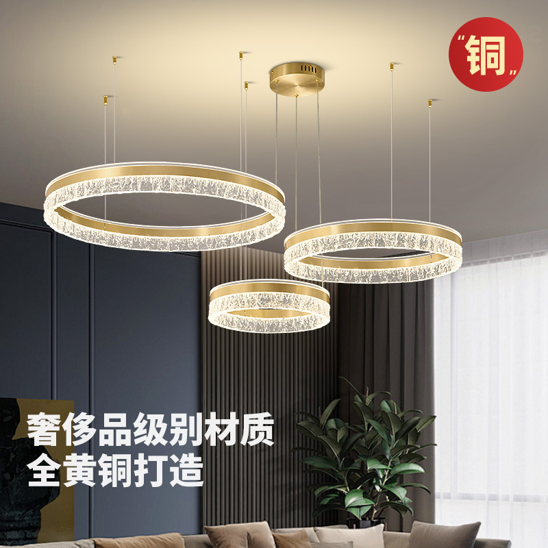 全銅フレンチミッドセンチュリーアメリカンレトロリビングルームシャンデリア平行マルチリングダイニングルーム寝室書斎スマート目の保護ランプ
