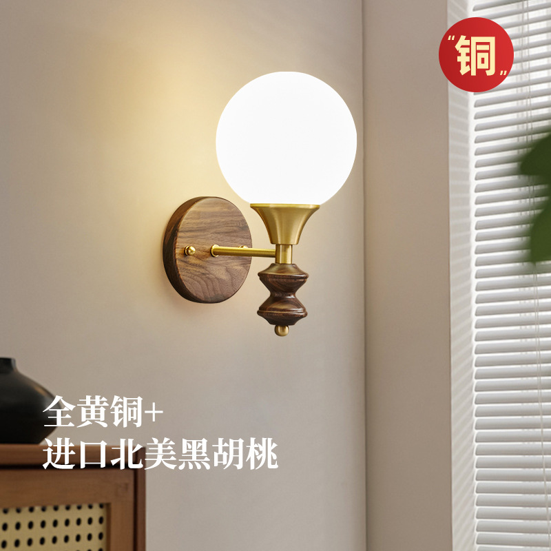 全銅中古風客間壁灯輸入北米黒胡桃木レトロベッド背景壁実木灯具