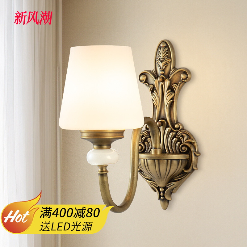 全銅アメリカ中古フランスレトロリビングルーム壁灯天然雲石寝室書斎通路背景ベッドサイド壁灯
