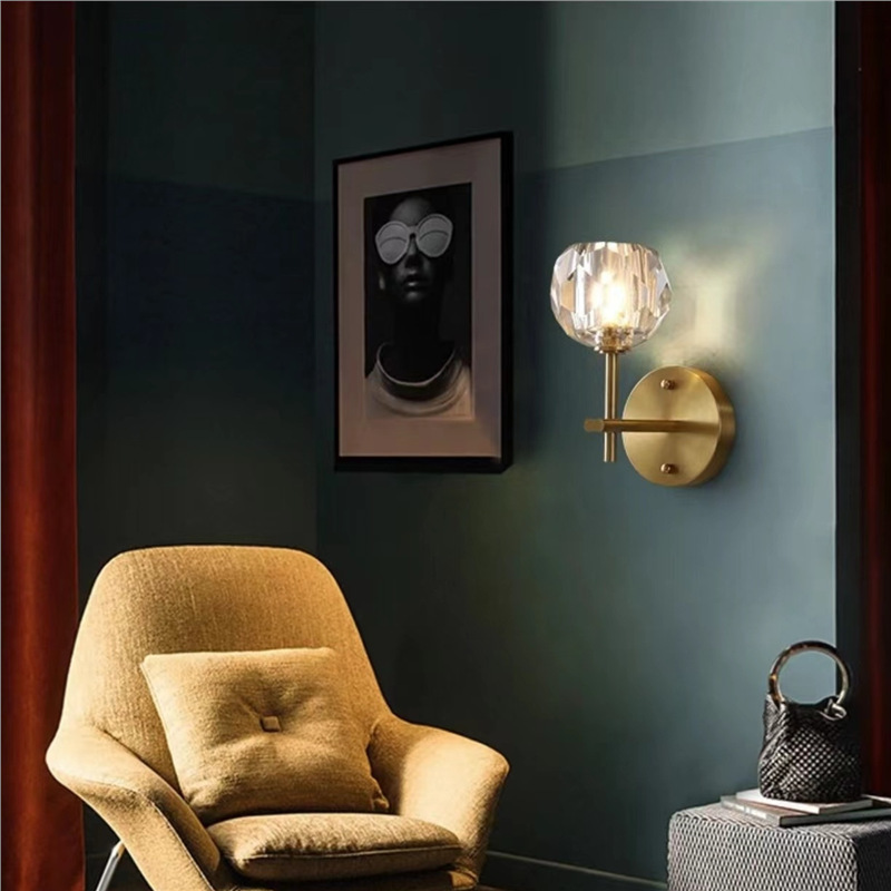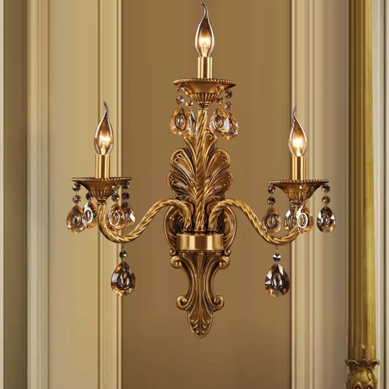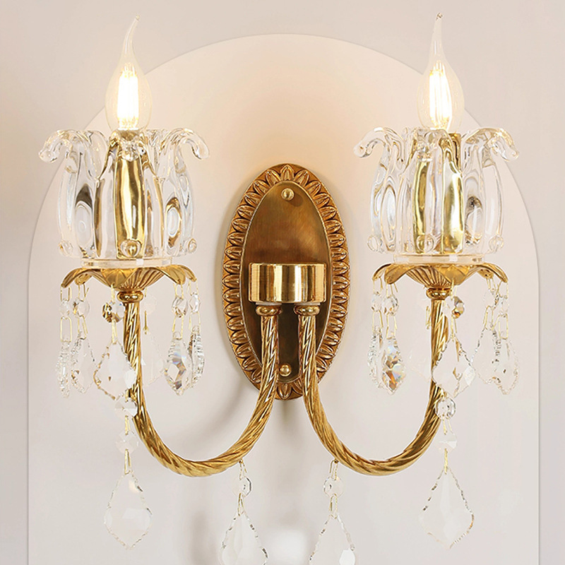 全銅フランス中古アメリカレトロリビングルーム壁ランプクリーム水晶後現代寝室ベッドサイドランプ
