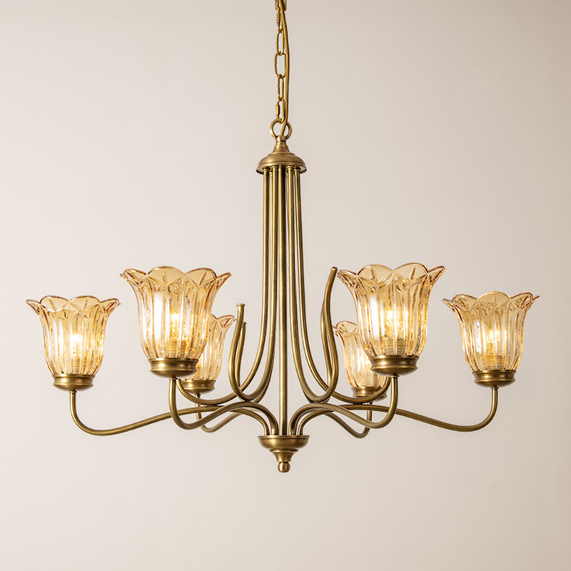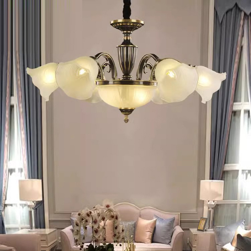 アメリカのレトロなシャンデリアの客間の明かりは全銅の軽くて豪華なフランスの高級感のレストランの照明器具の古い銅のガラスの寝室のイルミネーションです。