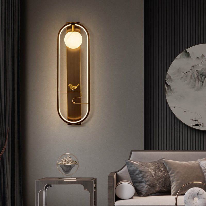 Suyin 新中国風全銅壁ランプ宋の美的中国風禅レトロリビングルームテレビ背景壁ランプ