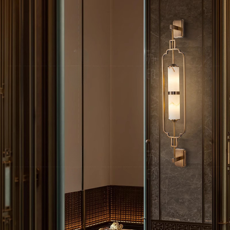 Suyin 新中国風ウォールランプ全銅リビングルームランプテレビ背景ヴィラ中国風雲石寝室のベッドサイドランプ