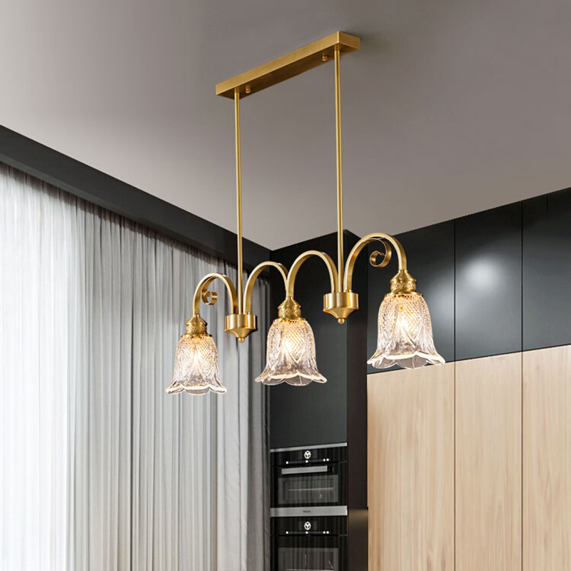 全銅のアメリカ式の軽い豪華なレストランの明かりのシャンデリアの3頭のバーの電気スタンドのシンプルなアイデアの長い円形の食堂の明かりN222