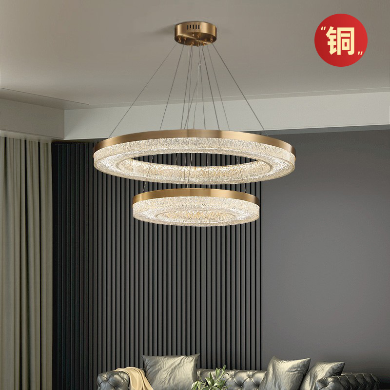 全銅フランス中古アメリカレトロリビングルームシャンデリアモダンシンプルクリエイティブ円形大気LEDスマート照明器具